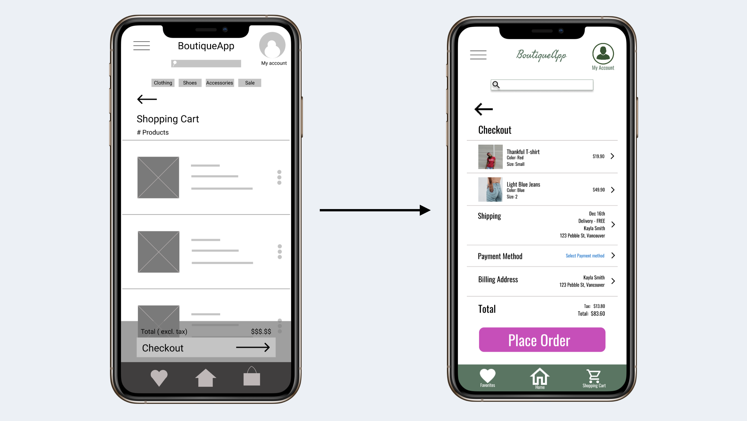 The final high-fidelity prototype is a lot cleaner and simpler for users to browse items, add to cart, and checkout.