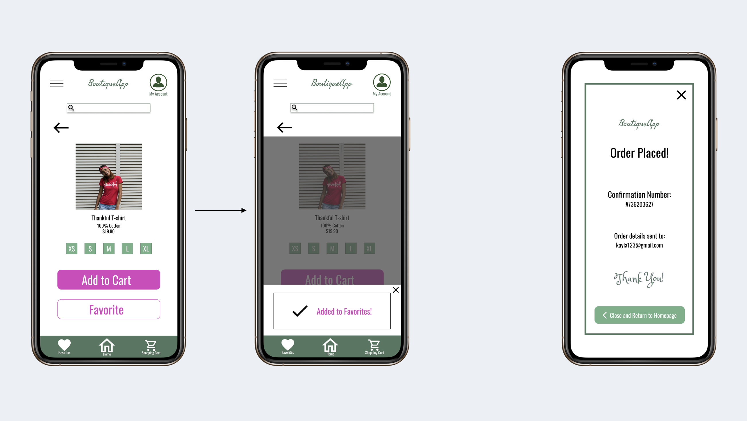 The second usability study revealed confusion when the "Add to Favorites" button was hit on an item page, there was no indication that action was complete, so I added a pop-up notification confirming the action.